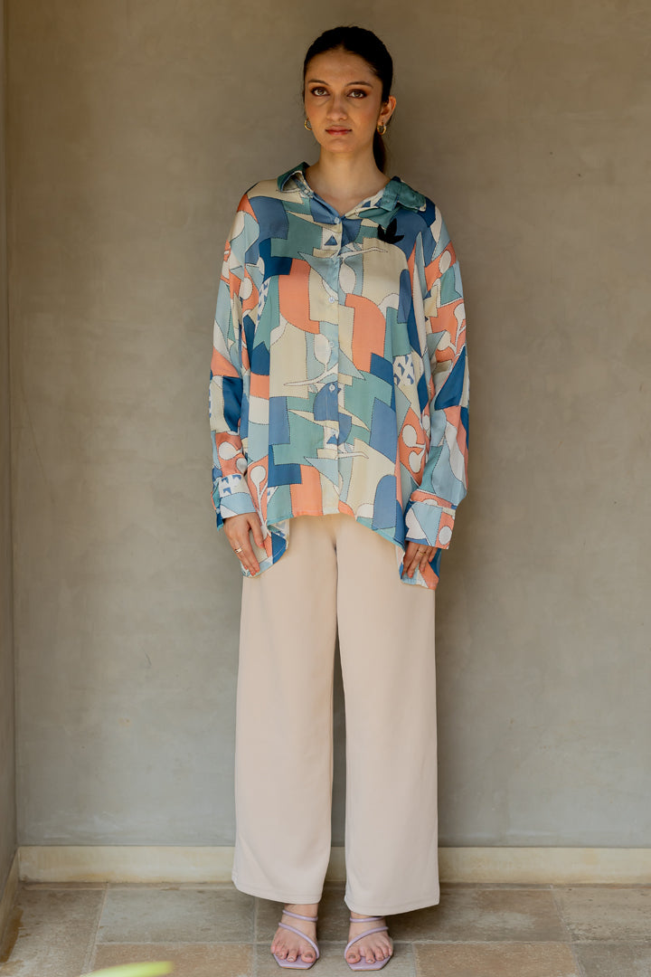 With its dreamy abstract print and a pop of beautiful colors, it’s all about turning heads. The full-length design keeps it classy, while the playful vibe adds that extra oomph. Pair it with jeans or a cute skirt – it’s a whole mood, ready for any occasion!